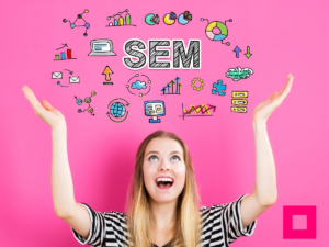 SEM concept with young woman